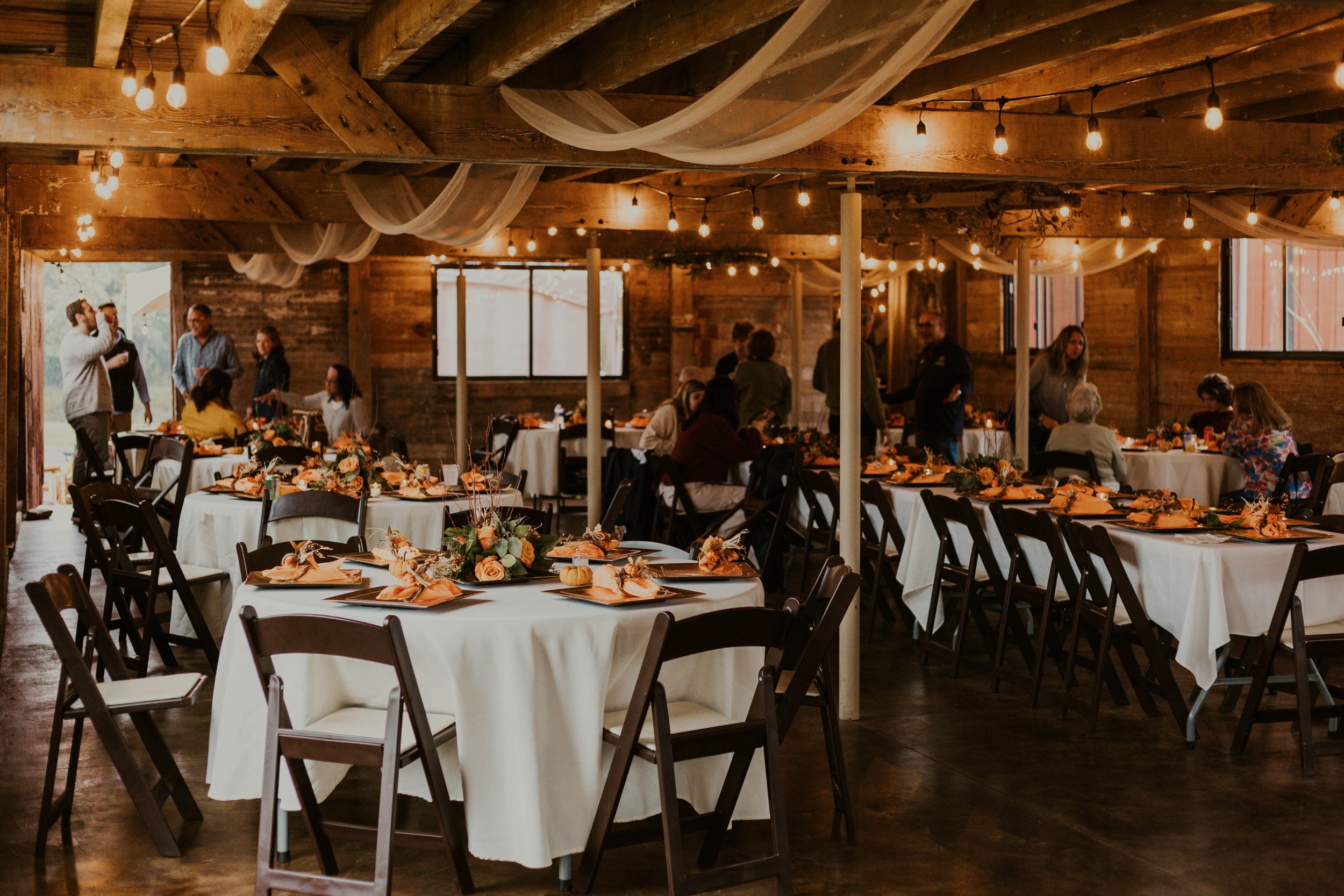 Barn rentals are offered as a lodge-style venue rental. Clients are responsible for event set-up and take-down. Catering and staffing are not included; however, Event Coordination and Catering Packages are available for an additional fee.